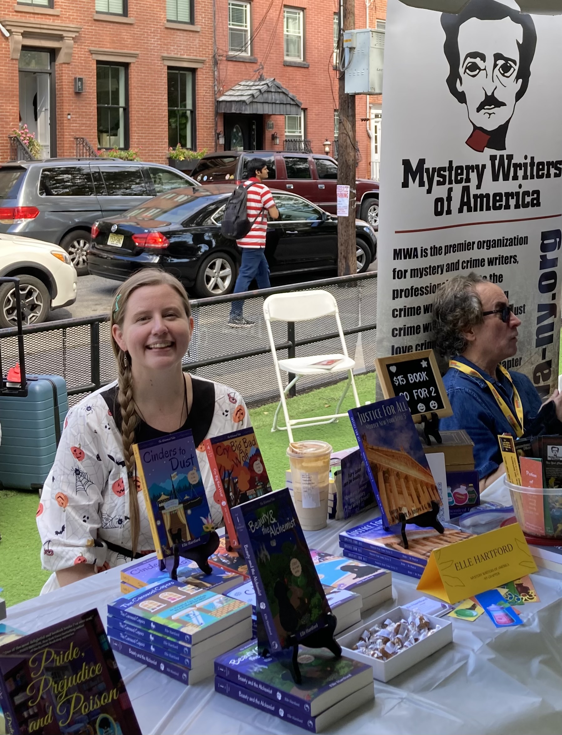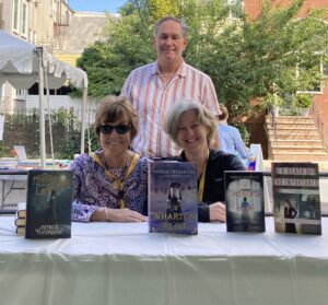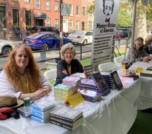 Many thanks to all our authors who represented the chapter so wonderfully at the Hoboken Public Library Book Fair on September 21! John O’Rourke, James McCrone, Patrice McDonough, V. S. Kemanis, Mariah Fredericks, Jim Fusilli, Philip Cioffari, Carole Bugge, Peggy Ehrhart, David Bushman, Theasa Touhy, and Samantha Hartford: it was great to see you all, and we hope to see you again at Revels on December 2nd. Special shout-out to Jamie and Mariah, without whom our chapter sign would never have found its way to an upright positon. Beth’s assembly skills were in dire need of assistance that sunny Saturday morning!