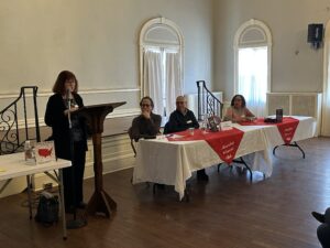 MWA members and the public gathered on February 7 at the Montclair Women’s Club in New Jersey for “Behind The Darkness: True Crime,” panel discussion moderated by Dawn Barclay. The panel, comprising Elizabeth Kerri Mahon, David Bushman, and Russ Colchamiro, peeled back the layers on this terrifying and addictive genre. There was a wonderful exchange of ideas with the enthusiastic audience.