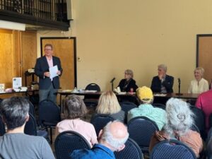 MWA members, mystery aficionados, and aspiring writers gathered on March 29 at the Parkway Central Library in Philadelphia for “Motive: The Essence of Mystery,” a panel discussion moderated by MWA Board Member Douglas Harrell. The panel, comprising Nancy A. Hughes, Jane Kelly, and James McCrone, explored how to establish motive from the sleuth’s and the criminal’s perspectives to create an intriguing story to keep readers turning pages. The audience hung on the panelists’ every word and asked intelligent questions. The event also provided a networking opportunity for local authors after the discussion.