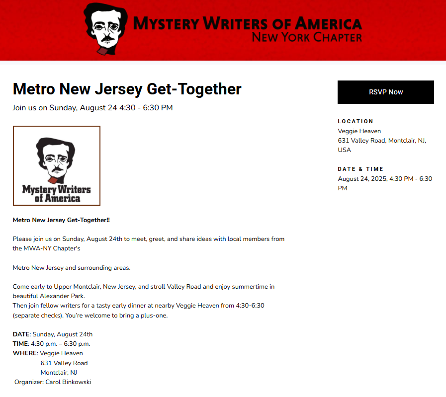 Please join us on Sunday, August 24th to meet, greet, and share ideas with local members from the MWA-NY Chapter’s