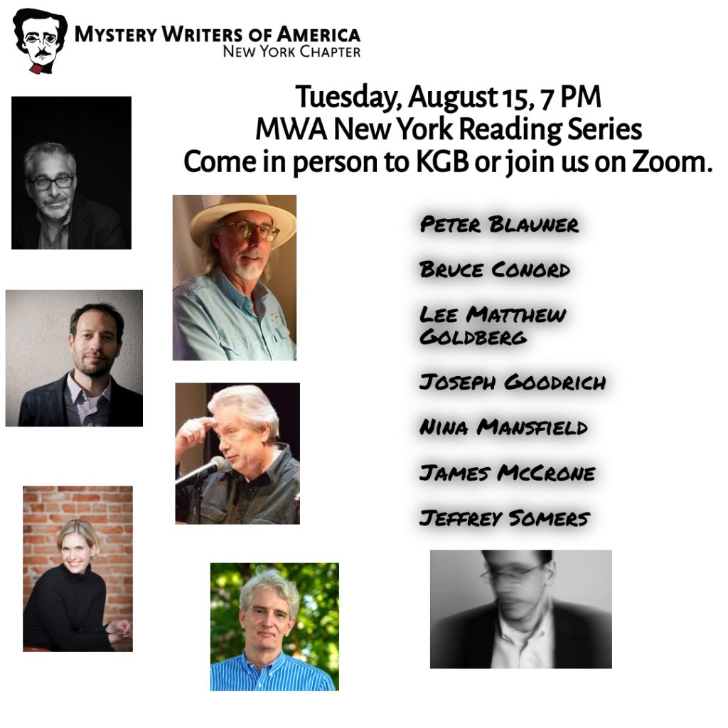 Seven MWA New York members will be reading on August 15. Come in person to KGB or join us on Zoom.
