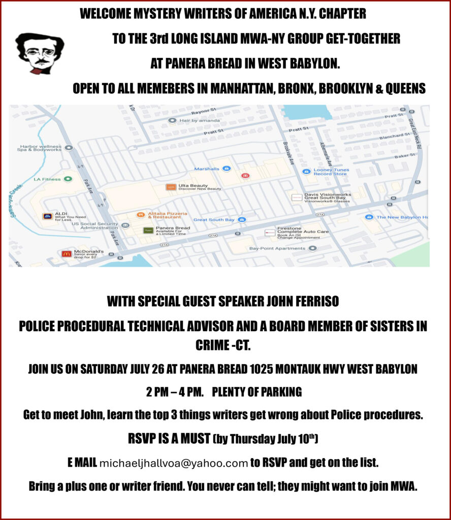 Five members of Mystery Writers of America (MWA) will read aloud from their work from noon to 2:00 p.m.
